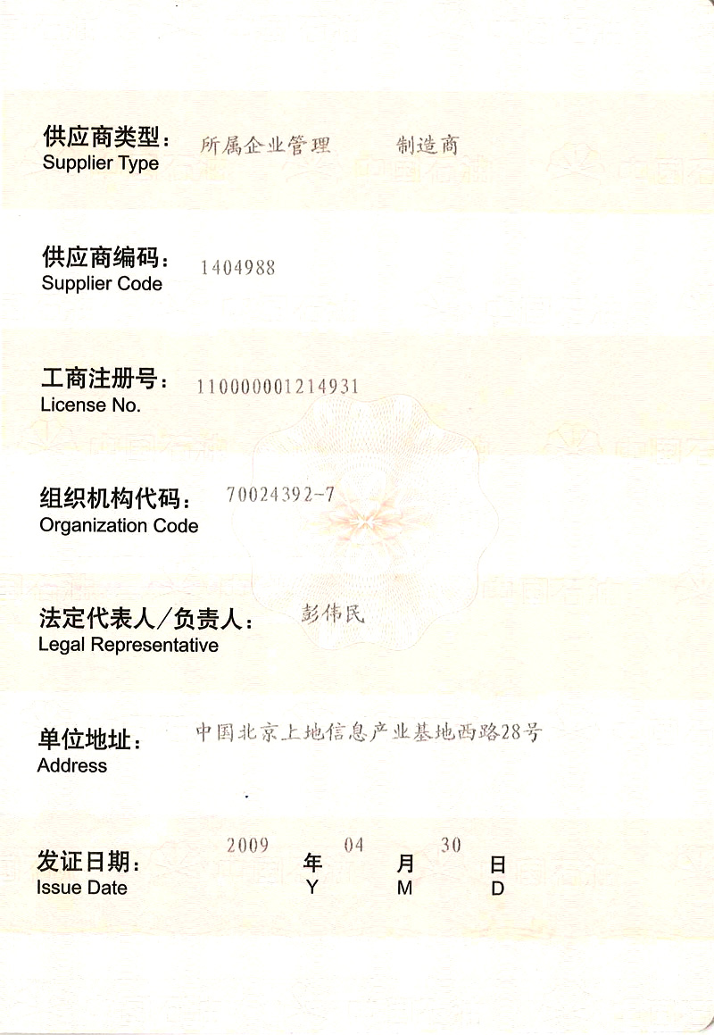 中國石油天然氣集團公司物資供應商準入證